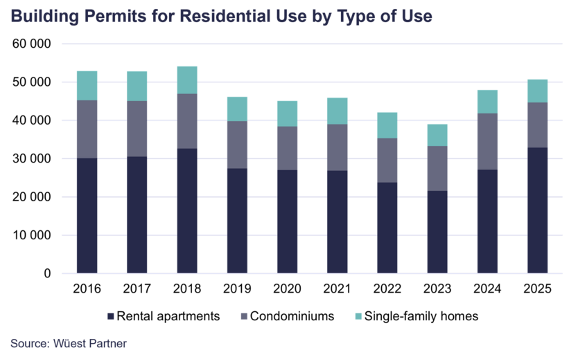 Although Wüest Partner forecasts a renewed increase in investment in residential properties in 2025, volumes are expected to remain well below the level required for a sustainable easing of the housing shortage.