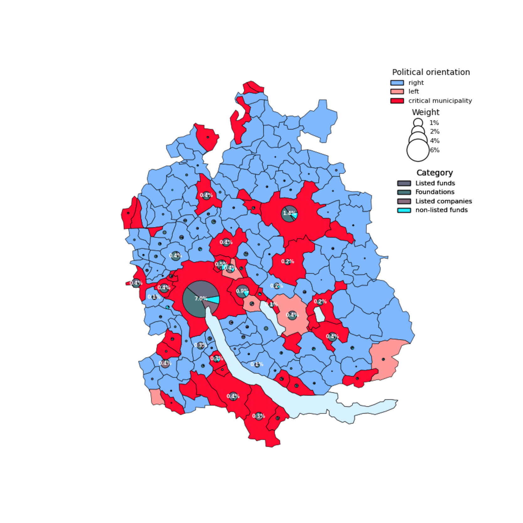 The picture becomes even clearer in the municipalities classified as “critical” – that is, where additional regulations would be most likely if the initiative were approved. In these municipalities, real estate companies hold only 7% of their total real estate assets in residential properties. For investment foundations, the share is 17%, and for listed real estate funds, 15%.