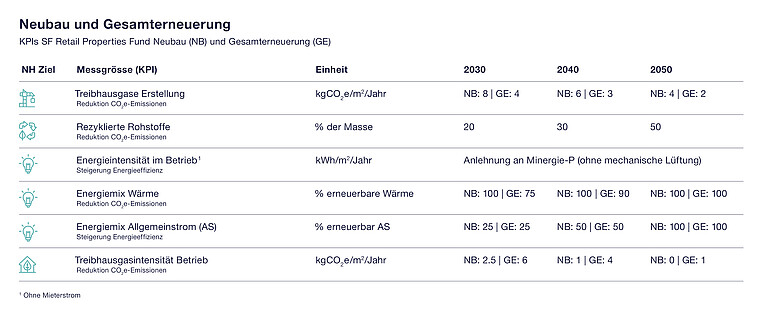 Der SF Retail Properties Fund strebt langfristig die Erreichung der Klimaziele 2030 und 2050 des Bundesrates (Netto-Null bis spätestens 2050) in Umsetzung des Nachhaltigkeitsansatzes Klima-Ausrichtung an. Nachhaltigkeitsaspekte werden im Anlageprozess und entlang der Immobilienlebens- und Investitionszyklen berücksichtigt.